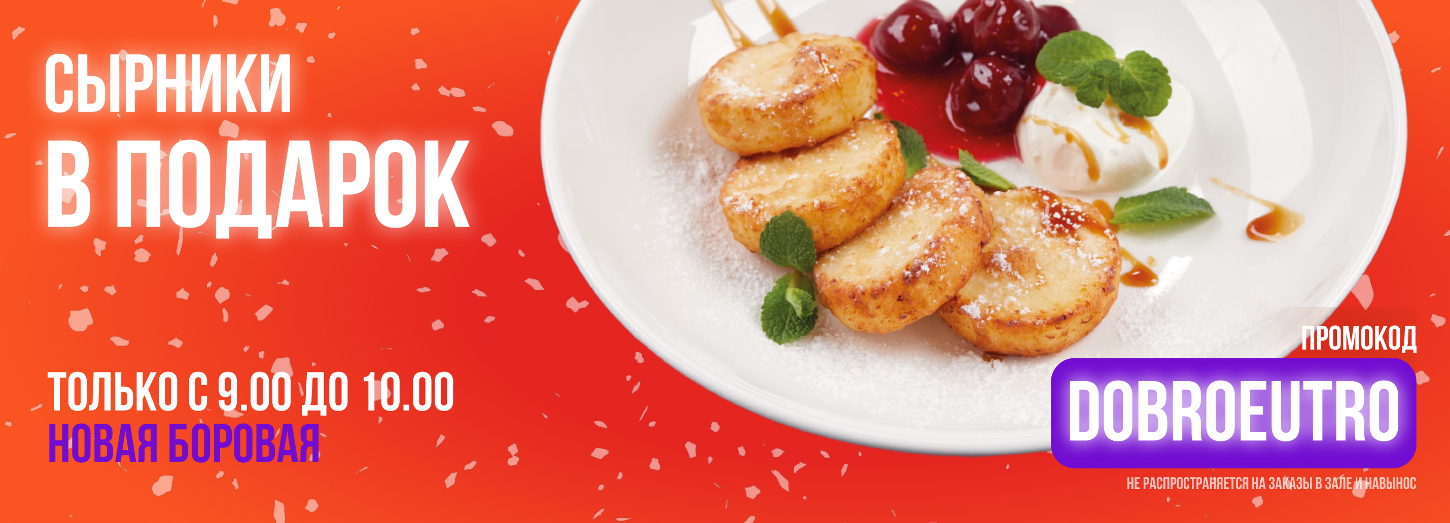 Вкусное утро вместе с Пицца Темпо для ЖК Новая Боровая! Только с 9.00 до 10.00 при заказе доставки от 25 рублей угощаем сырниками! Секретный промокод — DOBROEUTRO